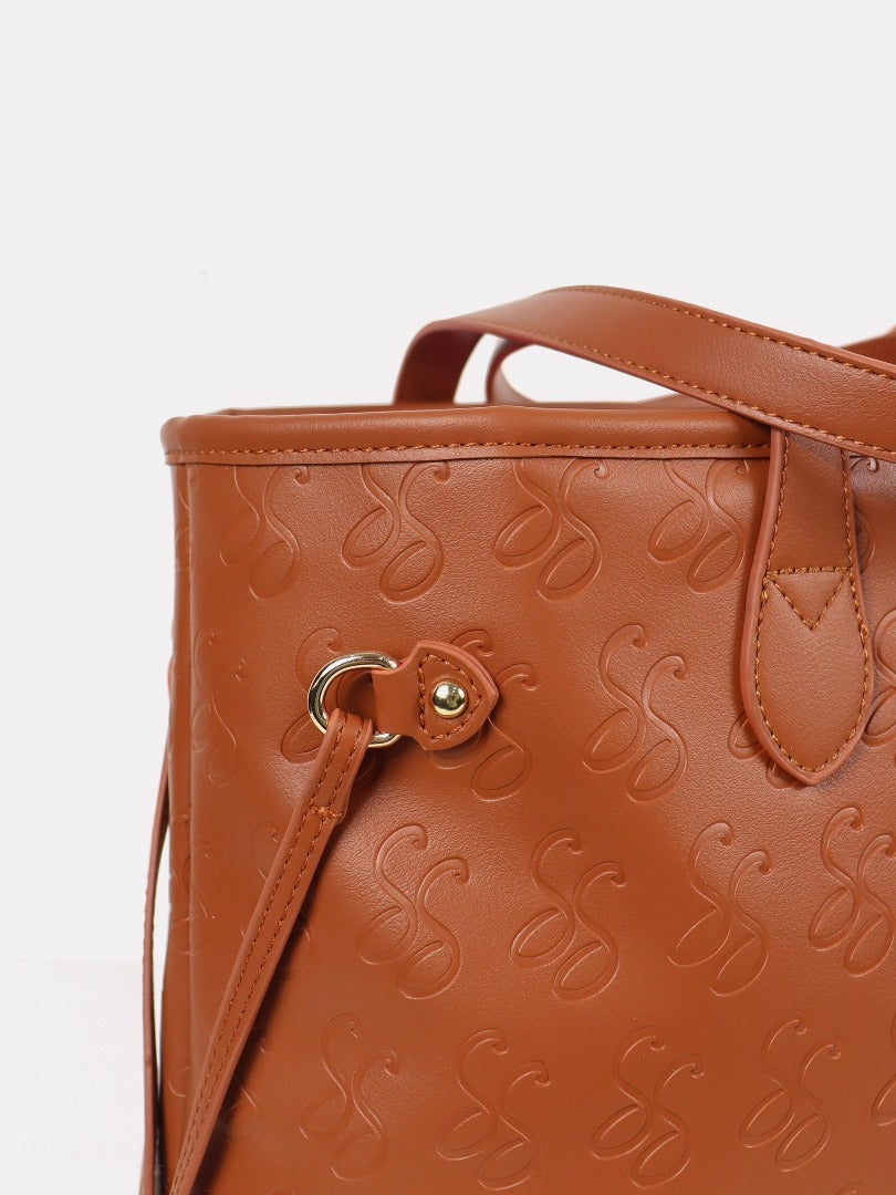 The perfect everyday TOTE BAG! This all purpose tote is adorned with our matte brown embossed logo on premium vegan leather, with a Fuchsia Pink interior. It's the perfect essential BAG for a true SHēK BABE!